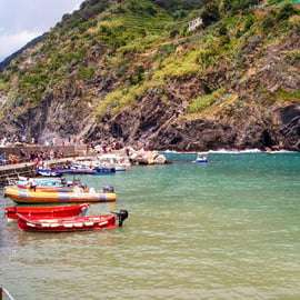 In Manarola angekommen, tauchen Sie ein in das charmante Treiben: schmale Gassen, pastellfarbene Häuser, die sich an die Klippen schmiegen, und das türkisblaue Meer bilden ein unvergessliches Bild. Eine gemeinsame Bootsfahrt bringt Sie anschließend nach Vernazza. Lassen Sie sich von dem Zauber dieses Fischerdorfes verzaubern – schlendern Sie durch die verwinkelten Gassen, bewundern Sie die bunten Boote im Hafen und genießen Sie den fantastischen Blick von einem der vielen Aussichtspunkte.